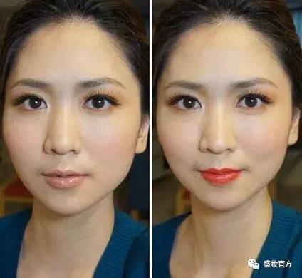 右邊:化妝+后期精修,其中口紅的作用不言而喻