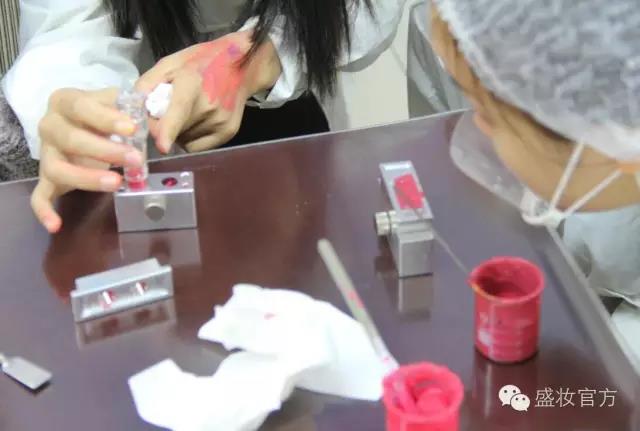 隨后,參觀人員又來到了口紅制作實(shí)驗(yàn)室,在這里,彩妝研發(fā)工程師為大家講解了手工制作口紅的基本工藝流程和注意要點(diǎn),并和大家一起完成了口紅的配料、加熱、倒模、冷卻成型的全部過程。