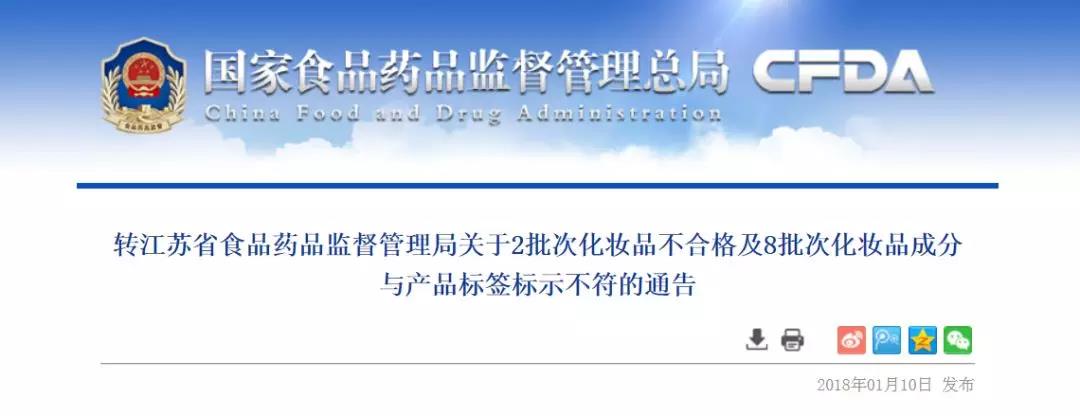 國(guó)家食品藥品監(jiān)督管理總局日前發(fā)布了《總局關(guān)于2批次化妝品不合格及8批次化妝品成分與產(chǎn)品標(biāo)簽標(biāo)示不符的通告》。