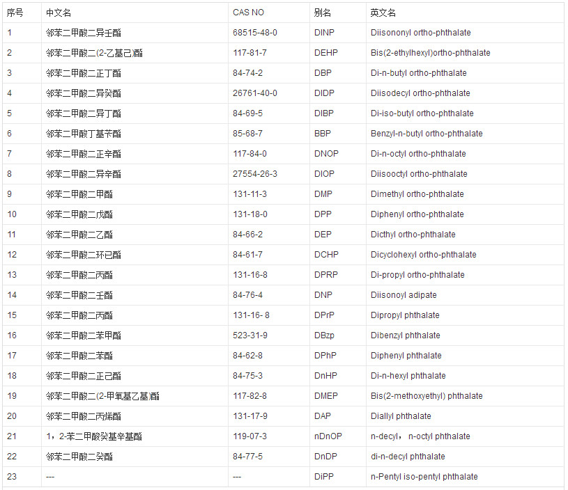 23種認(rèn)為有害并限制使用的鄰苯二甲酸鹽