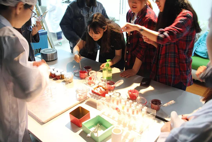 參觀體驗項目還包括口紅DIY和自主彩妝試色等活動。
