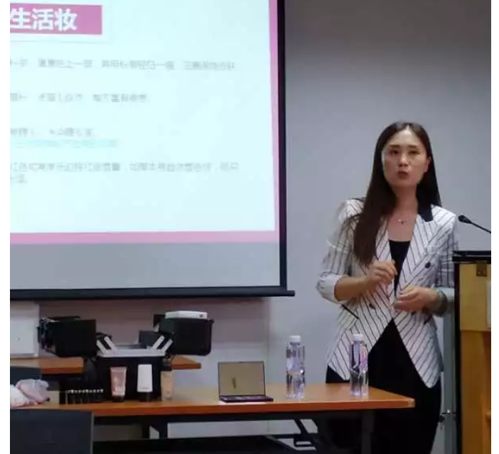 主講師主要為大家講了化妝的流程和彩妝產(chǎn)品的選擇方法,以及生活?yuàn)y和舞臺(tái)妝的區(qū)別,最后還對卸妝知識(shí)進(jìn)行了科普。