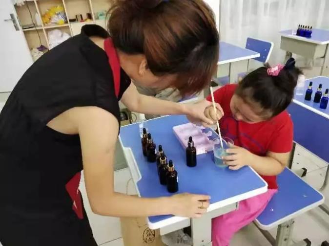 隨后,大家來(lái)到教室,親手DIY了漂亮的手工精油皂!