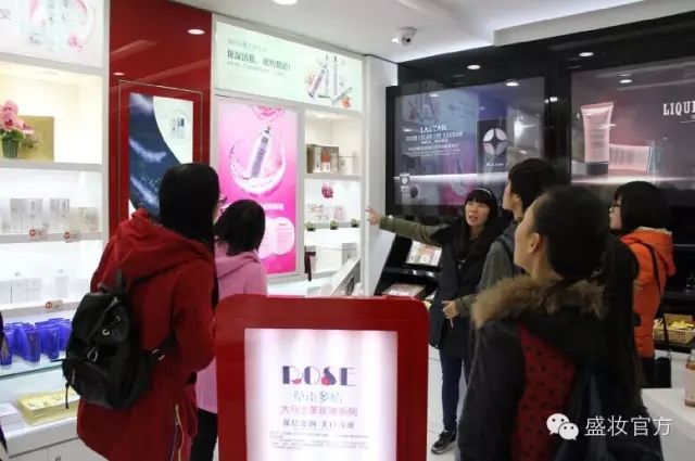 隨后,同學(xué)們又參觀了美麗屋化妝品零售店鋪,認(rèn)識(shí)了民族品牌的強(qiáng)大,了解化妝品市場(chǎng)需求。
