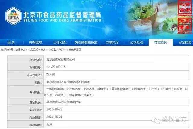 注:公司新化妝品生產(chǎn)許可證:京妝20160015,且產(chǎn)品包裝上不再標(biāo)注QS標(biāo)識。